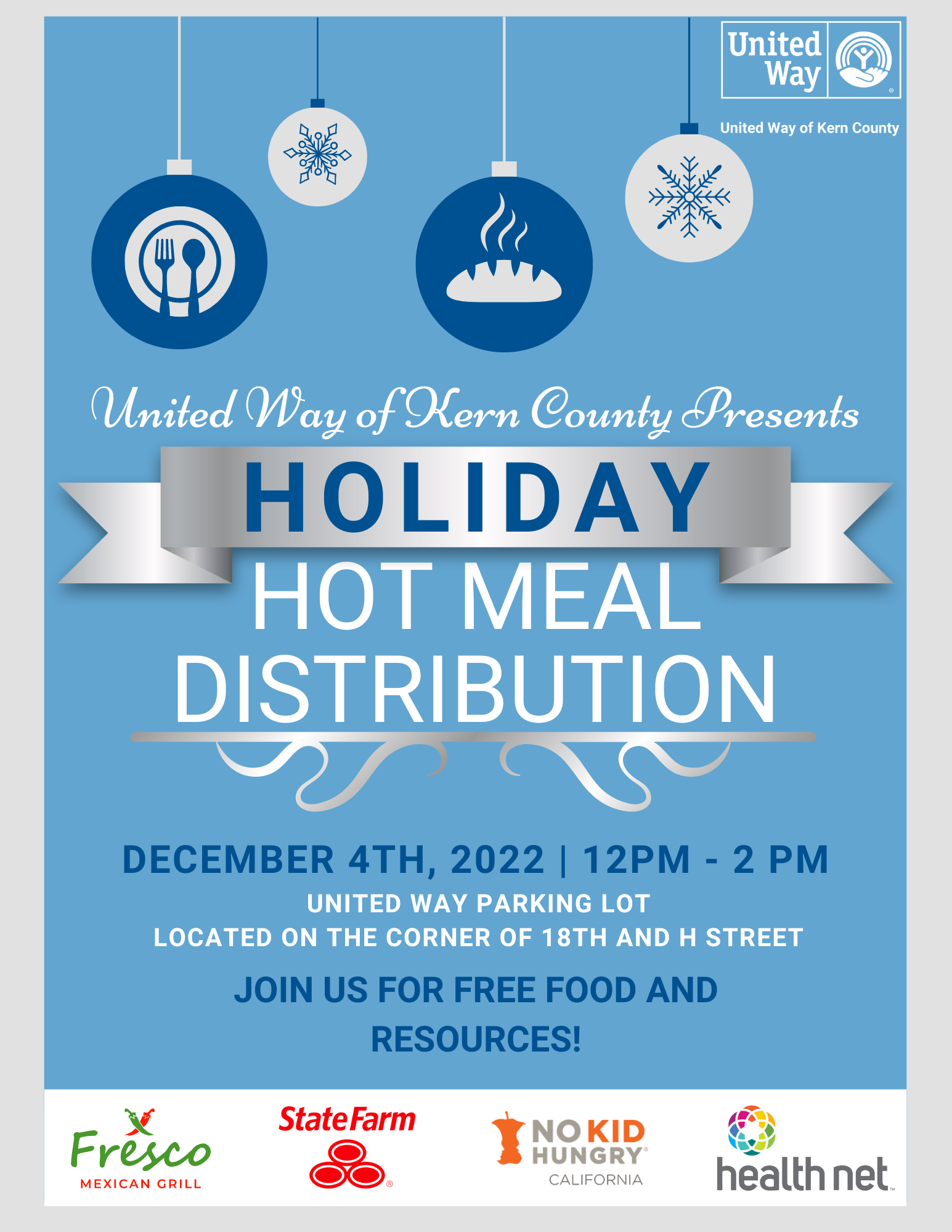 Join us for free food and resources December 4, 2022 12:00-2:00 in the United Way Parking Lot- corner of 18th and H Street.